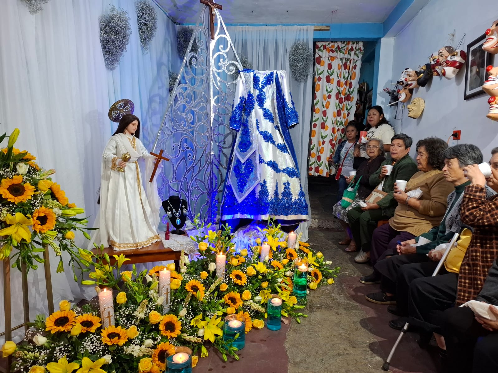 Durante la noche se coloca el vestido en un lugar visible para que las personas puedan contemplarlo y se llevan a cabo algunos rezos.
