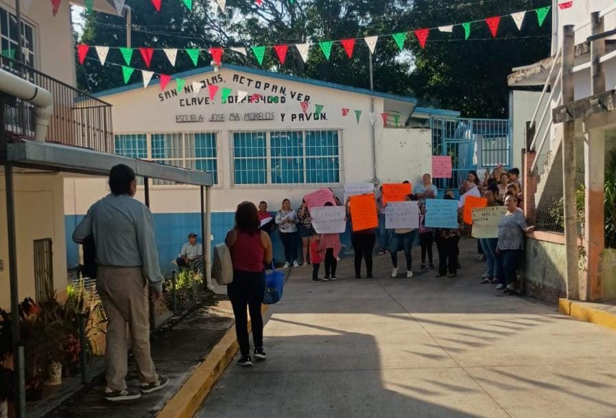 Desde tempranas horas, madres, padres y miembros de la comunidad, incluyendo a la agente municipal, se congregaron frente al plantel con pancartas en mano para exigir la restitución inmediata del docente, quien cuenta con más de 24 años de servicio y, según testimonios, jamás había recibido una queja por conducta inapropiada.