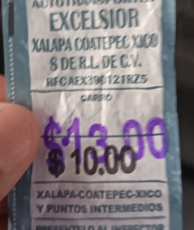 Coatepec. – La línea Autotransportes Excelsior se sumó al incremento en las tarifas en la región, al aumentar el costo del pasaje en la ruta Xalapa–Coatepec y viceversa de 10 a 13 pesos.