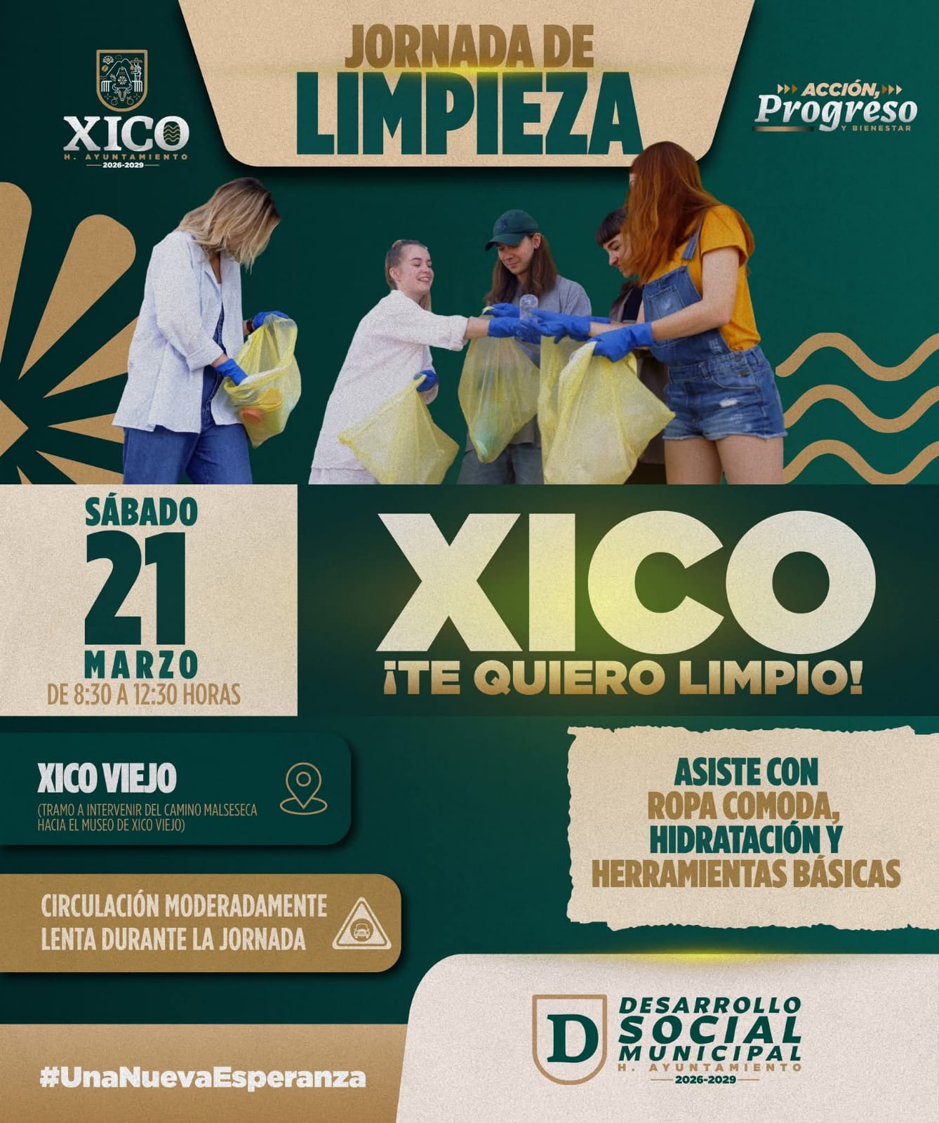 Xico. – El Ayuntamiento de Xico, a través de la Dirección de Desarrollo Social, lanzó la invitación a la población para sumarse a una jornada de limpieza en la zona de Xico Viejo.