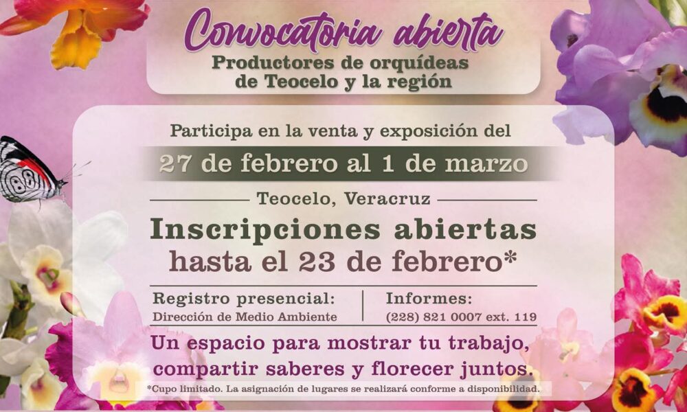 Teocelo. – En el marco del V Festival Nacional Dendrobium nobile, el Ayuntamiento de Teocelo, lanzó una convocatoria abierta para productores de orquídeas de Teocelo y...