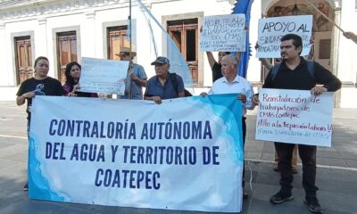 *Acusan al alcalde de desmantelar el sindicato Coatepec.- Integrantes de la Contraloría Autónoma del Agua y Territorio se manifestaron este lunes frente al Palacio Municipal de...